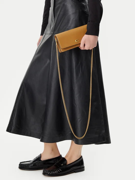 Form, function, and craftsmanship come together in the refined leather Evie Long Wallet. Detailed with the brand’s Signature hardware, this elegant piece features a convenient exterior pocket and a spacious interior with multiple card slots, a billfold compartment, and a zip pocket for coins. It also offers enough room to fit larger-sized phones. The wallet can be tossed into a bag, carried as a clutch, or worn crossbody with its detachable gleaming chain strap.